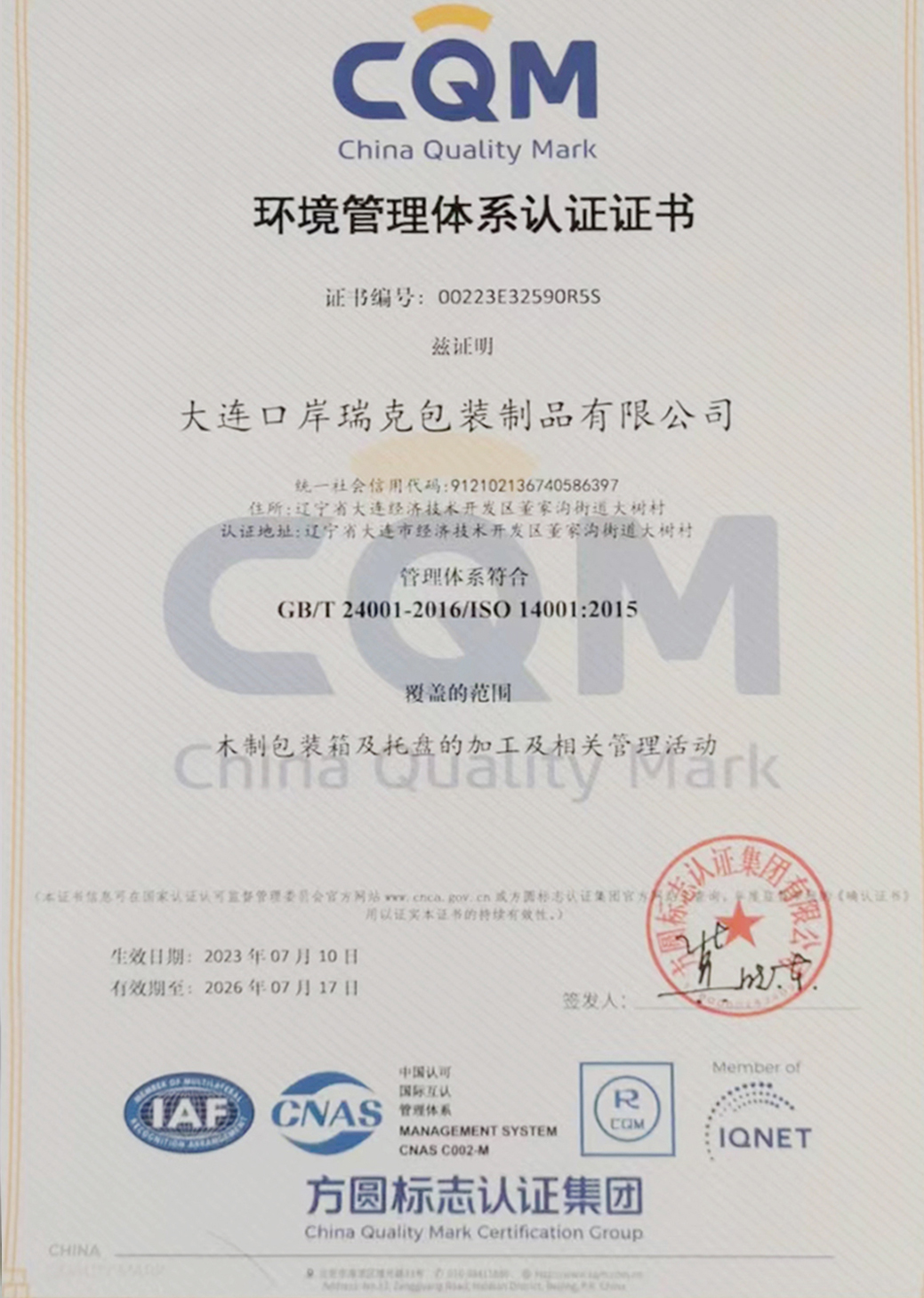 环境管理体系认证中文